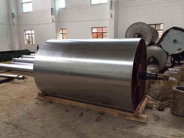 烘缸缸是用鑄鐵制成的兩端有蓋的空心圓筒,由缸體及其兩端的缸蓋組成,外徑多為1000~3000mm,在運轉過程中,內通蒸汽將輸送的紙張烘干燙光。